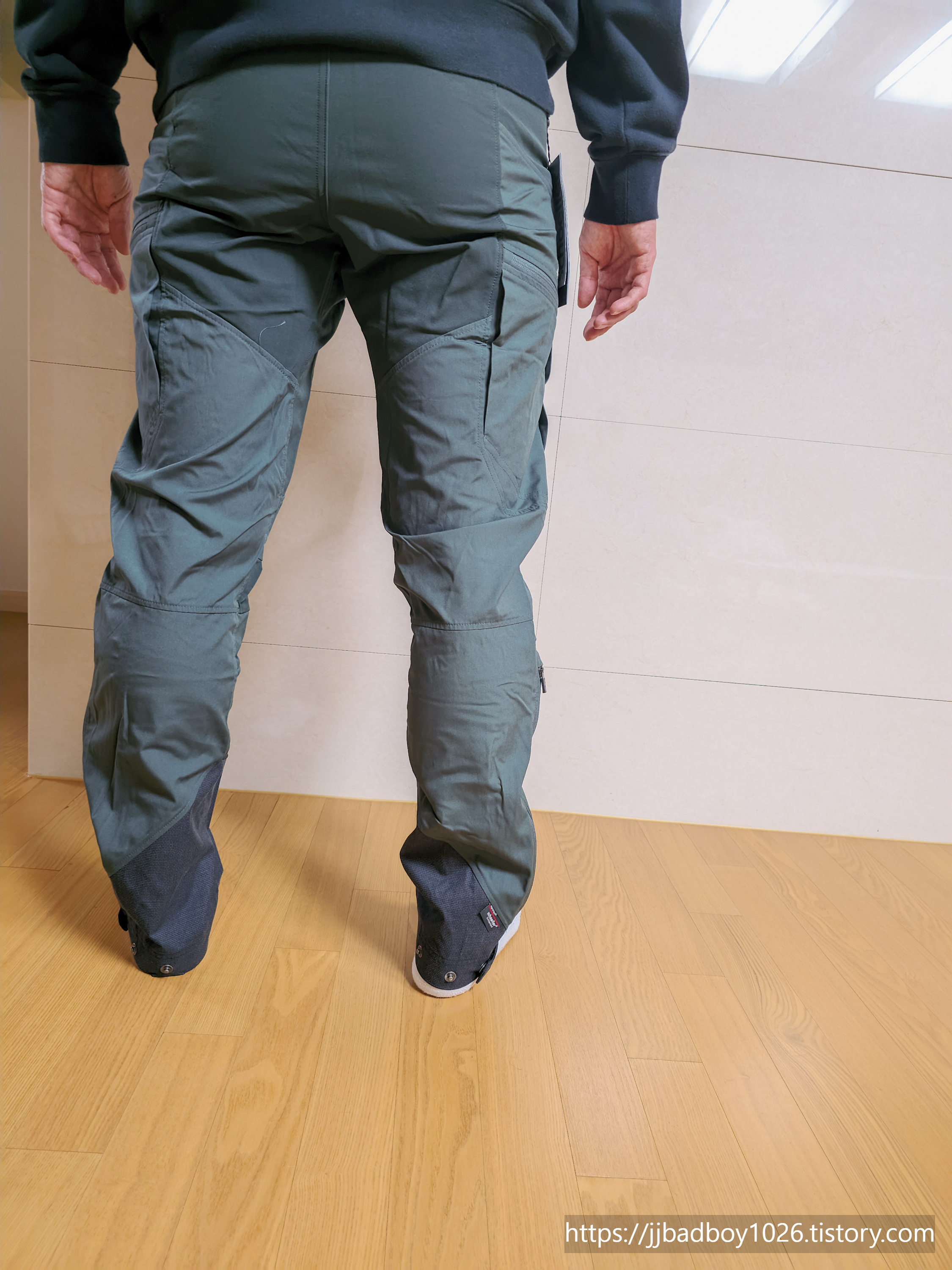 신체사이즈 174cm 76~78kg 허벅지 조금 두꺼운 편인데요. 허리 부분이 조금 여유 있는 정도이며, 허벅지와 종아리 엉덩이 부분 모두 만족스러운 사이즈입니다. 허리에는 찍찍이가 있어서 허리가 조절되니 상관없을 거 같아요. 수령 후 입고 산행을 해보니 정말 편하고 만족스러웠어요. 단점이 한 가지 있다면 하단 부분 통이 여성용이라 작다는 후기를 보았는데요. 정말 작기는 합니다. 제 주력 등산화가 캠프라인 마나슬루인데요. 딱 맞게 등산화가 가려지긴 합니다. 옆에 지퍼를 살짝 열어주면 해결이 되는데요. 불편하지 않으니 괜찮습니다.