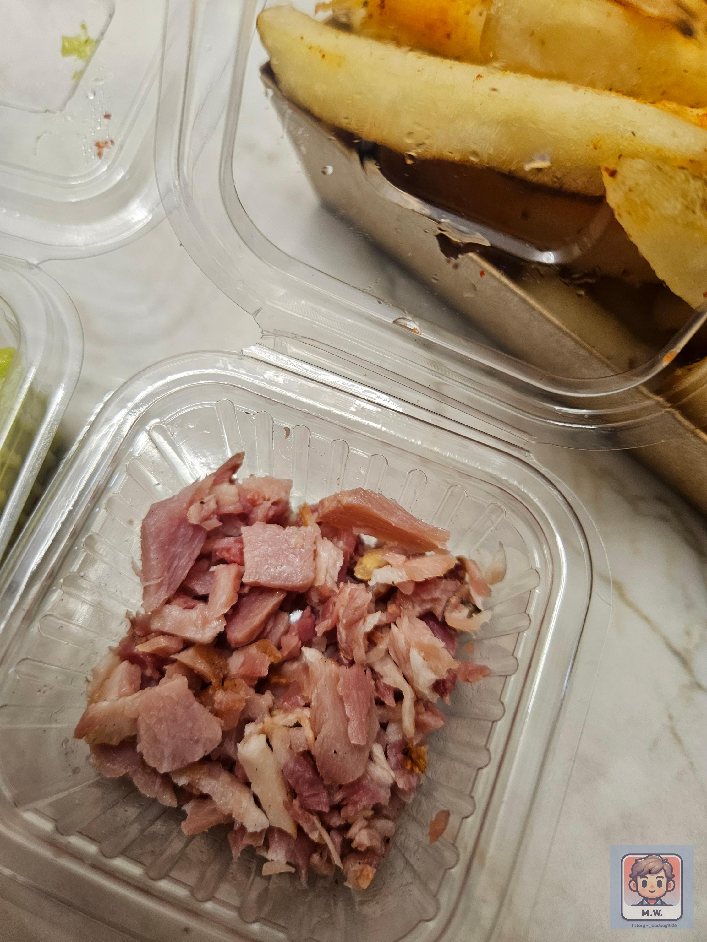 베이컨은 소스와 함께 감자칩에 곁들여서 먹으면 좋은데요. 먹는방식이 조금 특이하지만 벨기에식 감자칩이니 거기에 맞게 먹는 게 정석이죠!