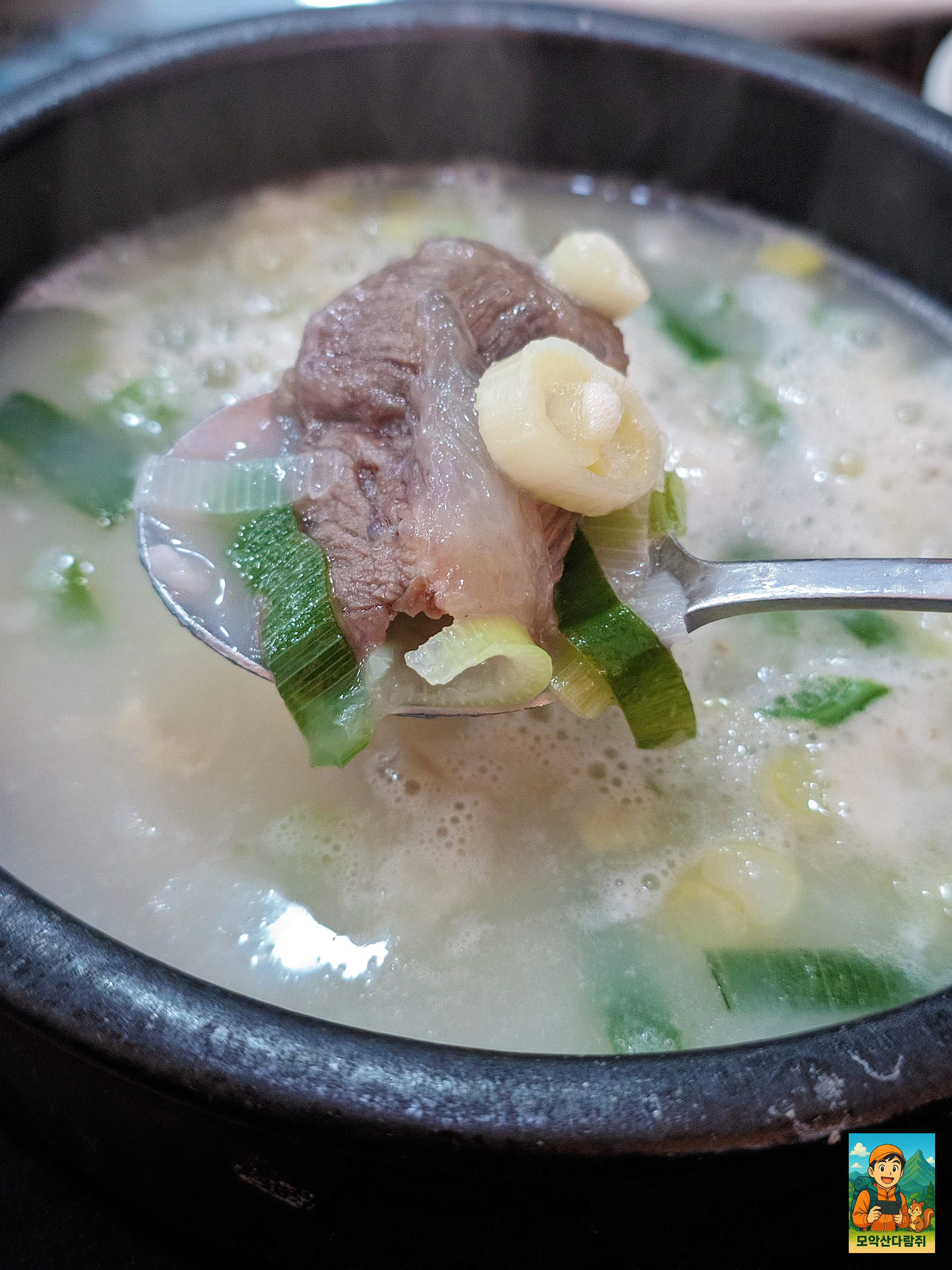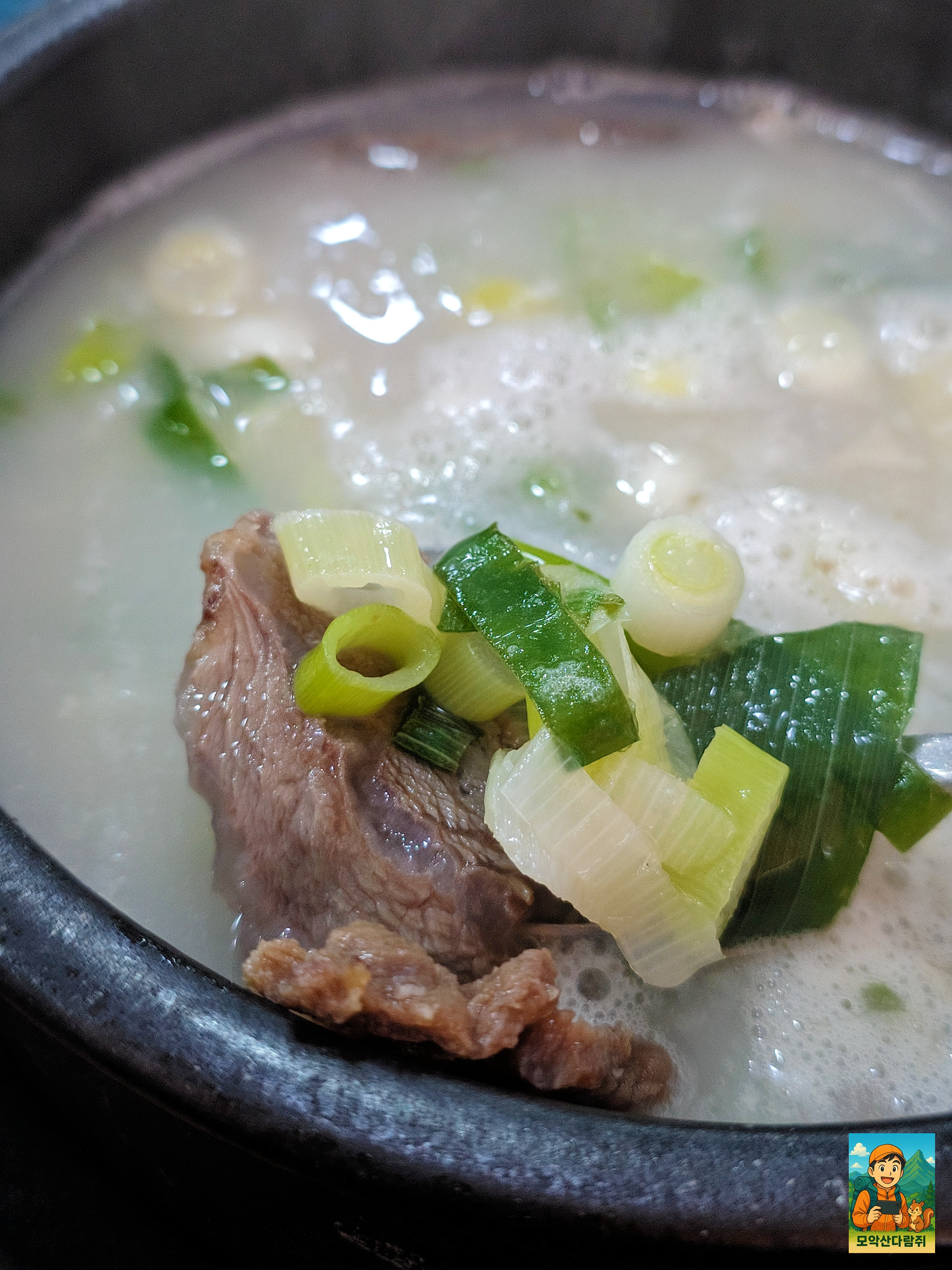뽀얀국물에 곰탕이 등장했는데요! 뜨거우니 주의~
