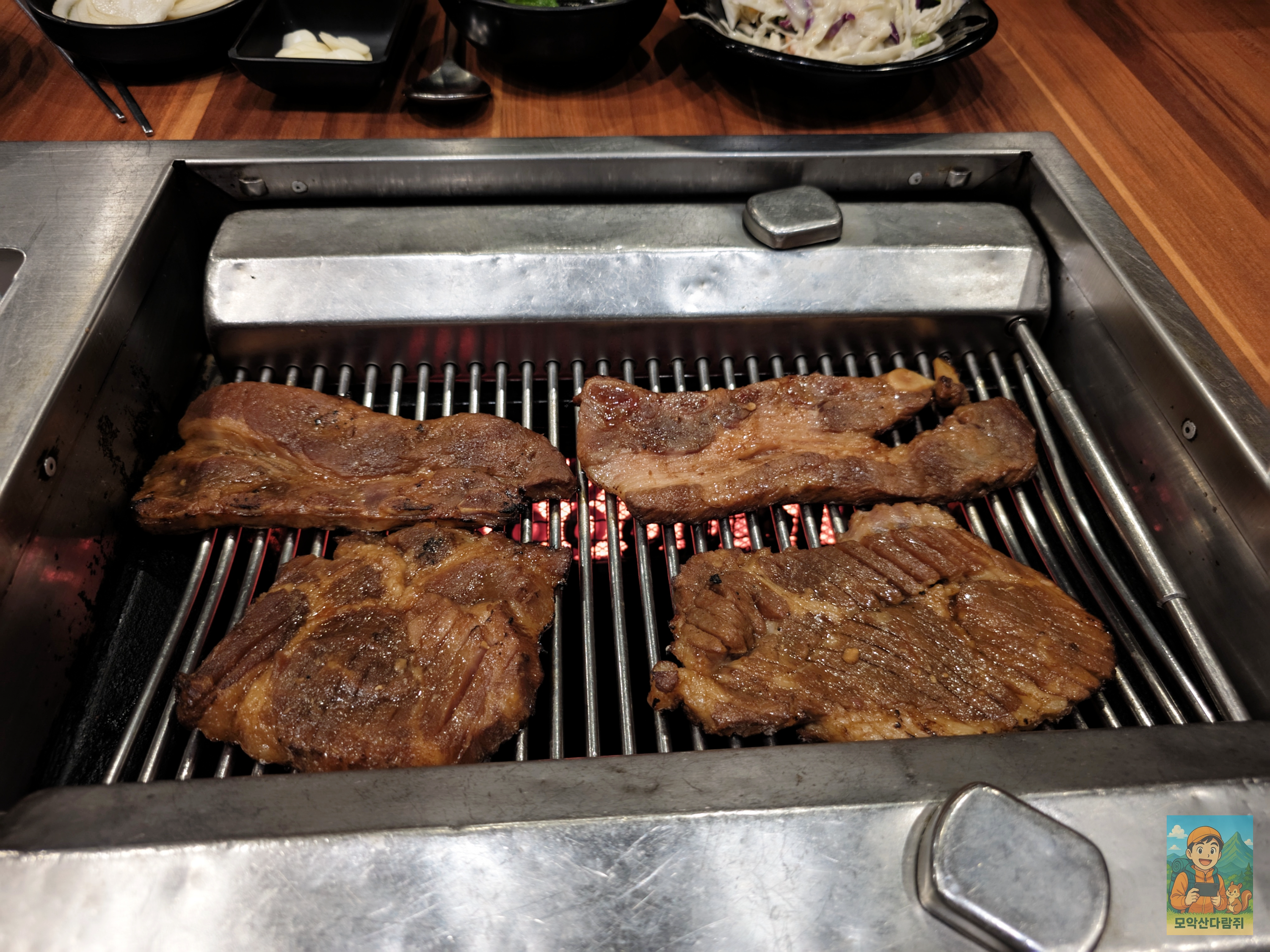 내부에 들어서면 깔끔했는데요. 다른 갈비집처럼 환기구가 위로 없으니깐 조금 더 깔끔해 보였습니다. 그리고 다른 갈빗집처럼 냄새가 많이 나지 않아서 옷에도 냄새가 덜 날 거 같은 느낌 ㅋㅋ