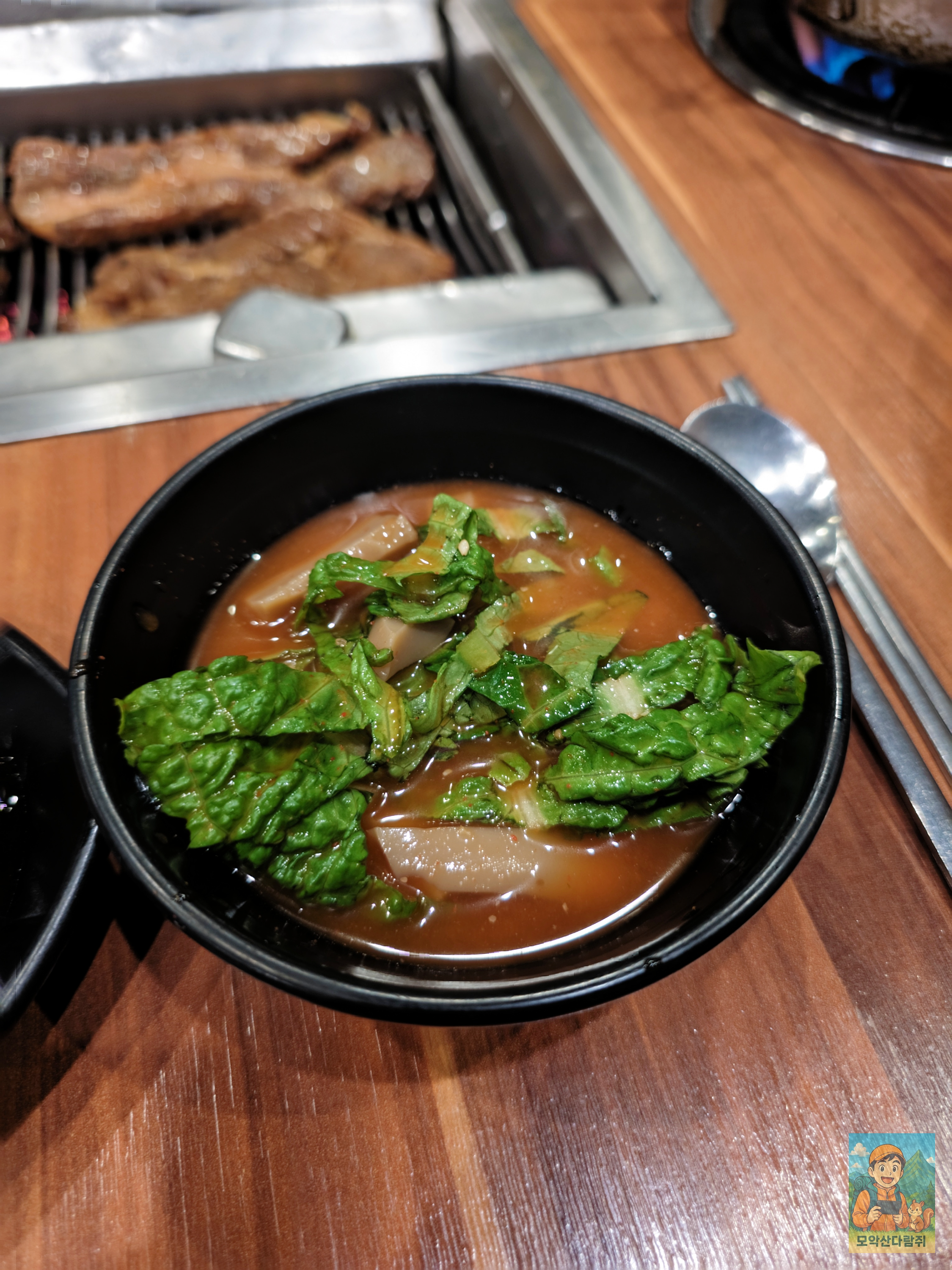 기본적으로 제공하고 있는 된장찌개는 너무 맛있었는데요! 테블이에 보시면 사이드 버너가 있어 끓이면서 먹을 수가 있어 너무 좋더라고요.