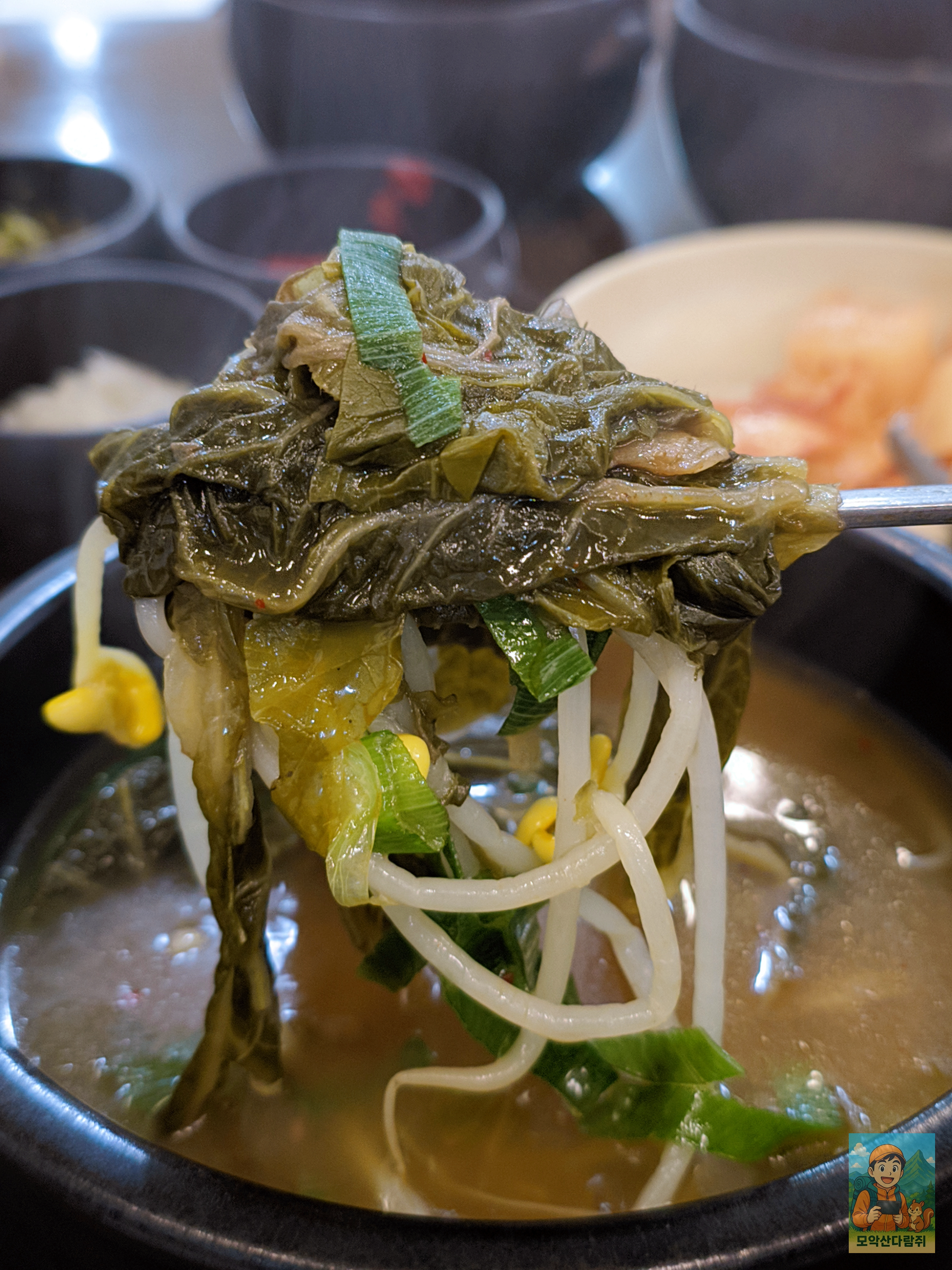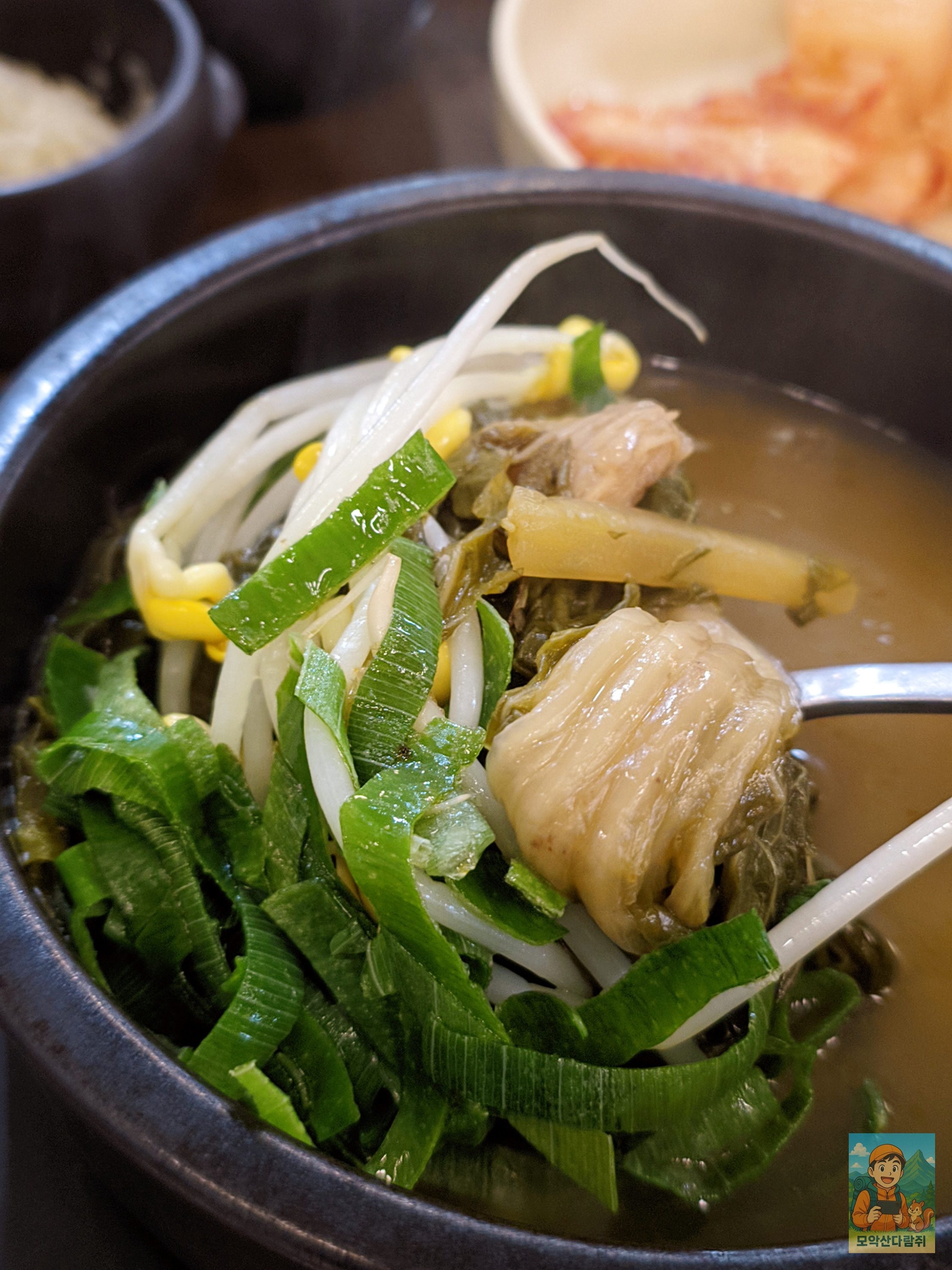 내부에는 우거지가 가득들어 있었고, 콩나물과 파들이 섞여 있었습니다.